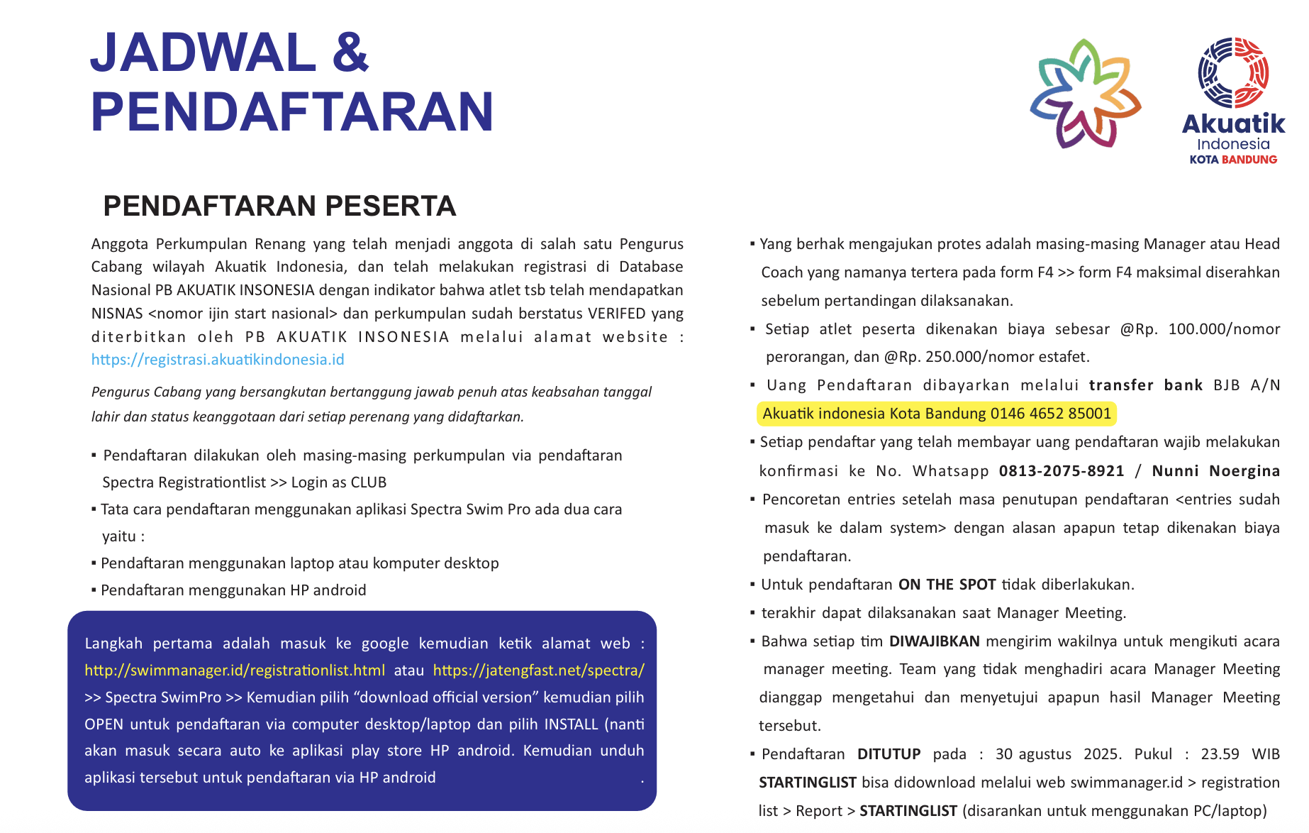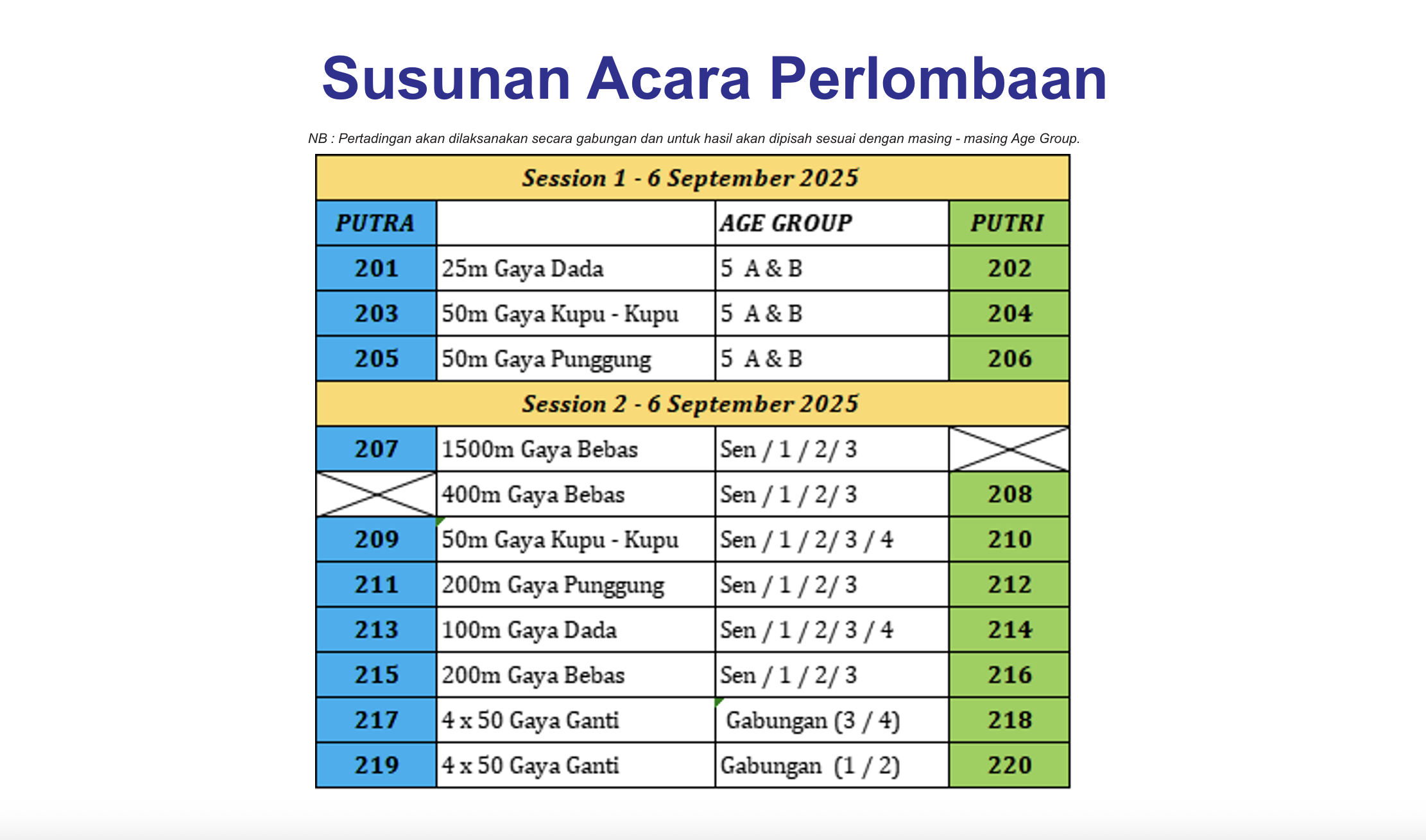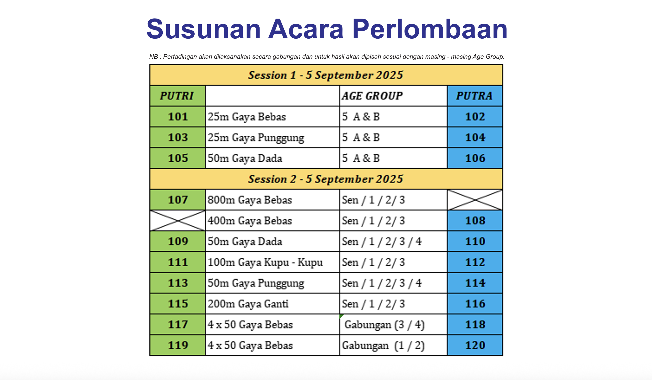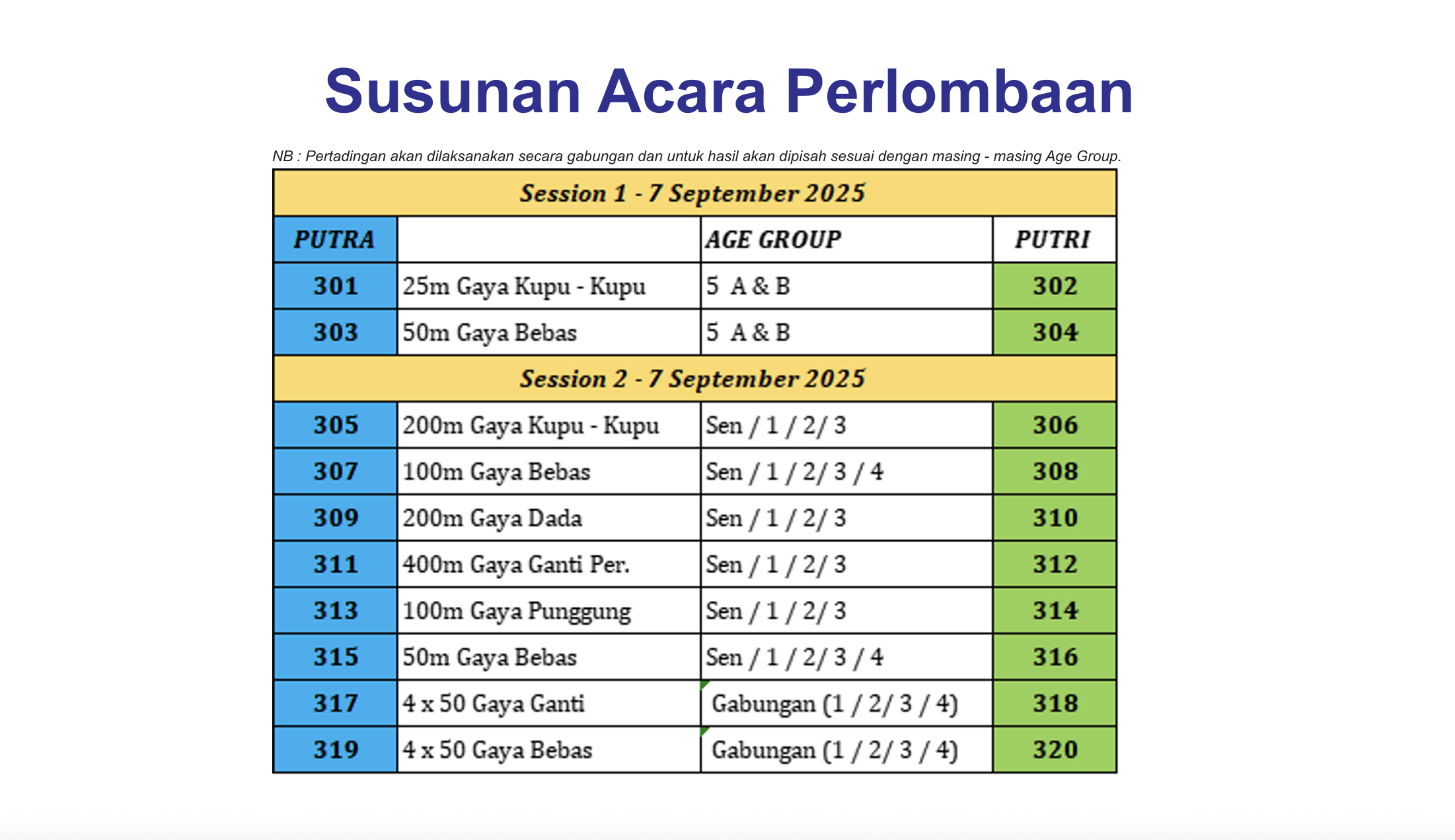 Kejuaraan Renang Terbuka Bandung Utama 2025 Se-Indonesia, 5 - 7 September 2025, Kolam Renang UPI Bandung